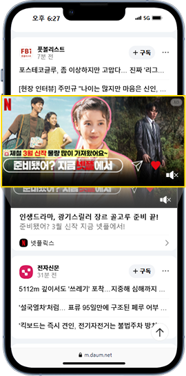 카카오톡 / 카카오 채널 / 다음 / 검색광고 / 쇼핑 광고 등 FirstScreen이 되어가는 Mobile지면부터 상세한 정보 탐색을 많이하는 PC지면까지, 이용자가 있는곳이라면 어디든 광고를 노출합니다.카카오서비스를 비롯한 주요 네트워크 지면에 노출됩니다.